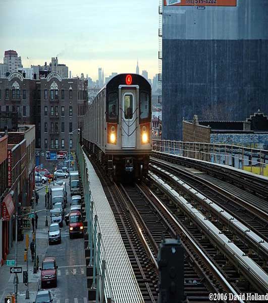 Woodlawn bound 4 train approaching the 183rd Street station. Resized photo courtesy of Eye On Transit